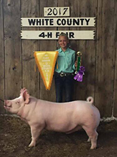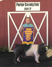 ![]() Reserve Grand Champion Barrow 2017 Starke County Fair, IN Bred & Shown by Belle Bennett Sired by I’m The Man |