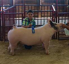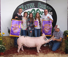 ![]() Reserve Champion Overall Market Hog Sired by Detour |