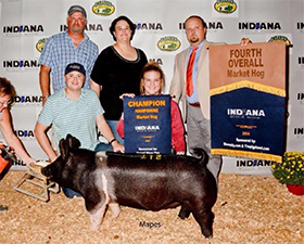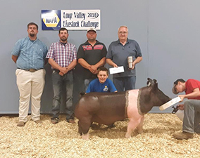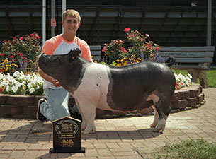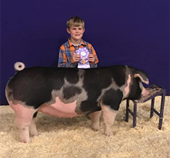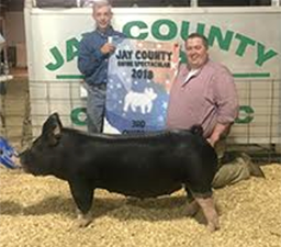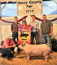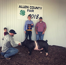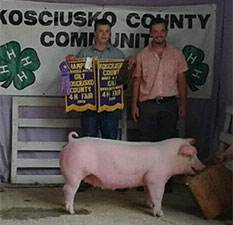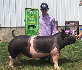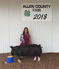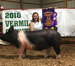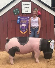 ![]() Grand Champion Barrow Overall 2018 Vigo County Fair, IN Shown by Ali Evans |