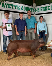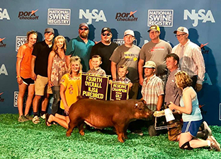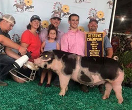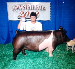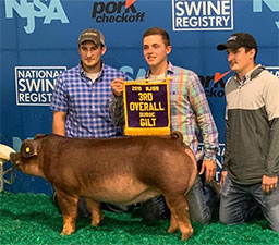 3rd Overall Barrow & Champion Duroc 2019 Southern Illinois Showcase Shown by Logan Beckmier Bred by Logan Farnham Sired by Unforgettable |