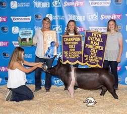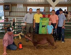 Grand Champion Gilt Overall & Champion Spot 2019 Wabash County Fair, IN Bred & Shown by Brice Patrick Sired by Double Time |
