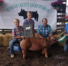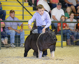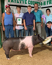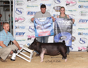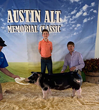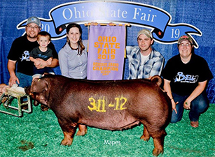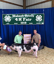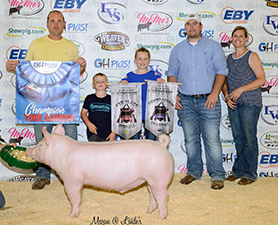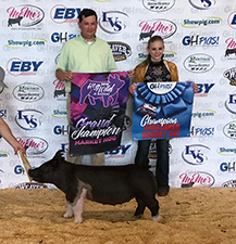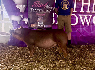 3rd Overall Barrow & Champion Spot 2019 Wabash County Fair, IN Bred & Shown by Brice Patrick Sired by Double Time |