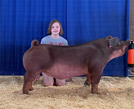 Grand Champion Barrow Overall Grand Champion Purebred Barrow Grand Champion Duroc Barrow 2019 South Dakota State Fair 4-H Show Shown by Wirt Family Bred by Hauger Show Pigs Sired by Unforgettable |