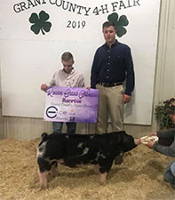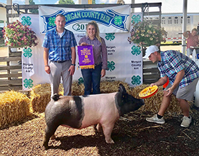 Grand Champion Barrow 2019 Tippecanoe County 4-H Fair Shown by Sophie Royer Bred by Chad Day Showpigs Sired by Novocain |
