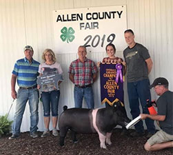 Grand Champion Market Litter 2019 Putnam County Fair Bred & Shown by Barger Family Showpigs Sired by Double Time |