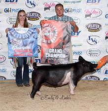 ![]() Grand Champion Commercial Gilt 2019 State Fair of Louisiana Shown by Caroline Doise Bred by S&K Showpigs Sired by Solo |