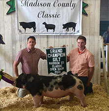 Grand Champion Overall Market Hog Grand Champion Market Gilt Ring A 3rd Overall Market Hog Grand Champion Market Gilt 2019 Madison County Memorial Day Classic, OH Ring B Shown by Abby Hemphill Bred by G&S Swine, OH Sired by Solo |