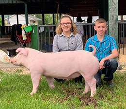 Reserve Champion Purebred Gilt 2019 Cumberland County 4-H Fair Shown by Wyatt Huddleston Bred by Hughes Showpigs, IL Sired by Unforgettable |