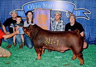 Grand Champion Duroc Barrow Overall Champion FFA Duroc Barrow 2019 Missouri State Fair Shown by Zach Trout Bred by Lance Martin Sired by Unforgettable |