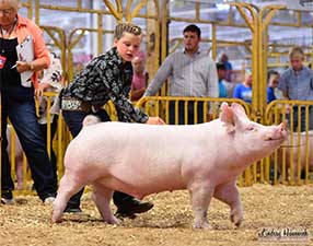 Reserve Champion Yorkshire 2019 National Western Stock Show Shown by Flora Appleton Bred by DJ Sanders Sired by Sit Tight |