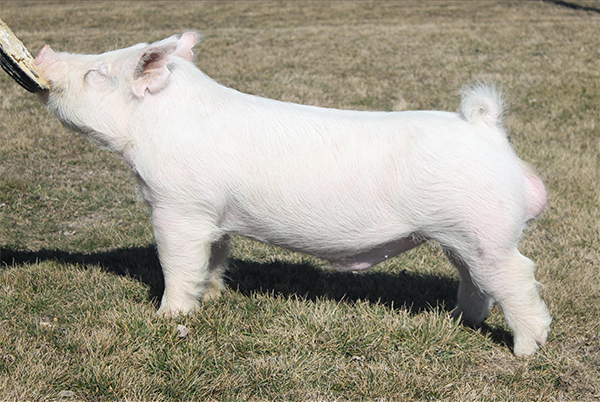 Elite solid white boar!!! Sired by Keep Cool here at Top Cut that has done a