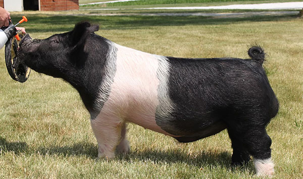 NOTES: 2023 Exchange Purchase and littermate to Follow Me Mother is a littermate to Reserve Champion Barrow ’17 OYE -Right combination of frame size and length of body -Big round rib cage -Wide backed and Big hipped -Combines look and stoutness -Breed to sows that need more bulk and mass