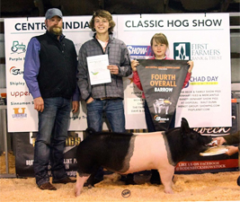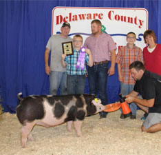 ![]() Reserve Champion Overall Market Hog Sired by Detour |