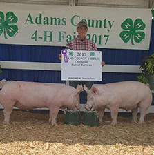 ![]() Reserve Grand Champion Barrow 2017 Starke County Fair, IN Bred & Shown by Belle Bennett Sired by I’m The Man |