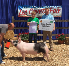 ![]() Supreme Champion Overall Gilt 2017 Muscatine County Fair Bred by Cox Family Sired by Detour |