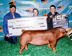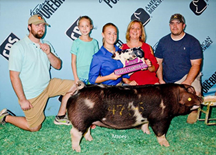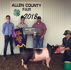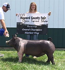 ![]() Grand Champion Barrow Overall 2018 Vigo County Fair, IN Shown by Ali Evans |