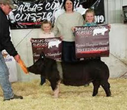 Champion Breeding Gilt 2019 Kendall County, TX Bred by Ben Bobell |