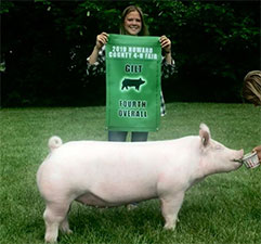 ![]() Reserve Champion Berkshire Gilt - Open Show Class Winning Gilt in - Jr. Show 2019 Ohio State Fair Shown by Kenna Seaburn Bred by Daulton Family Showpigs Sired by Gold Digger |