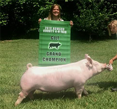 Grand Champion Barrow & Champion Crossbred 2019 Tipton County Fair, IN Shown by Brooklyn Day Bred by Chad Day Showpigs Sired by Get It On |