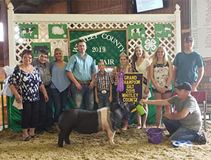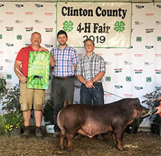 Grand Champion Barrow 2019 Tippecanoe County 4-H Fair Shown by Sophie Royer Bred by Chad Day Showpigs Sired by Novocain |