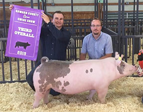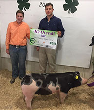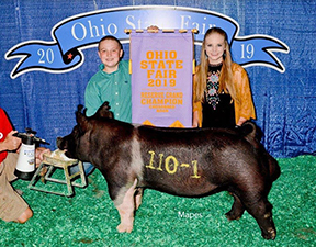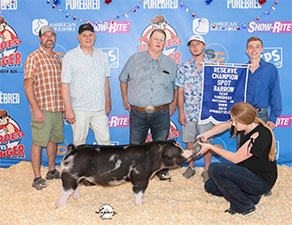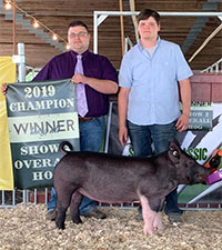 3rd Overall Barrow & Champion Spot 2019 Wabash County Fair, IN Bred & Shown by Brice Patrick Sired by Double Time |