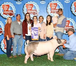 ![]() Grand Champion Commercial Gilt 2019 State Fair of Louisiana Shown by Caroline Doise Bred by S&K Showpigs Sired by Solo |